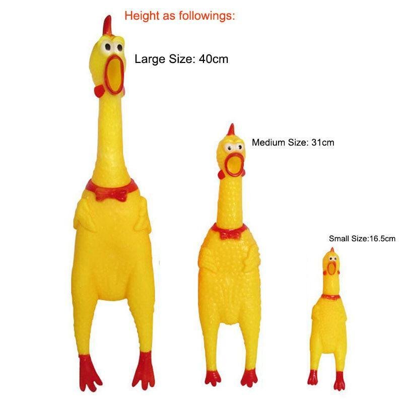 Type: Screaming ChickenMaterial: RubberColor:yellowSize: Approx 17 cm / 6.69 inch; 32 cm/12.6inch; 40 cm/15.75inchPackage Included: 1 pcs pet toys Note:1.Because the measurement of each person different there maybe 1-2 cm errors; kindly understanding. products regardless of dog breeds and gender.2.Due to the difference between monitors; the picture may be a little different with the actual color of the item. thank you for your understanding!