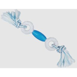 Multipet Canine Clean Peppermint Dumbbell With TPR Core & Rope Ends Dog Toy Blue, White 11 in