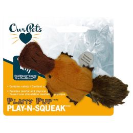 OurPets Play N Squeak Platty Pup Catnip Toy Brown Small